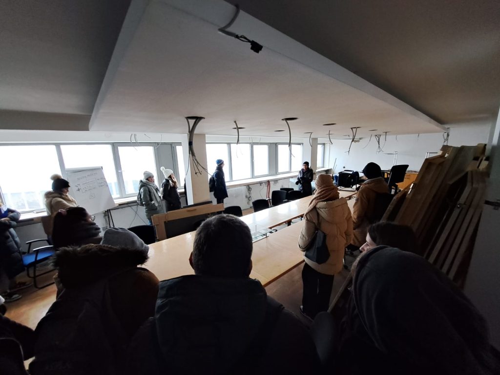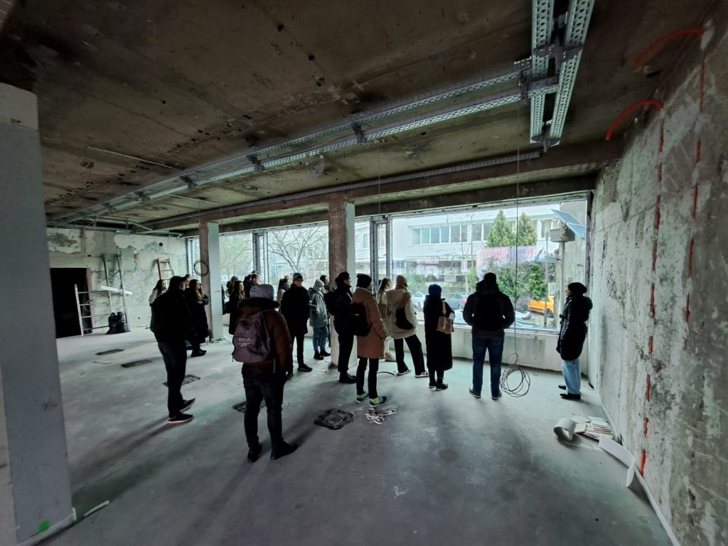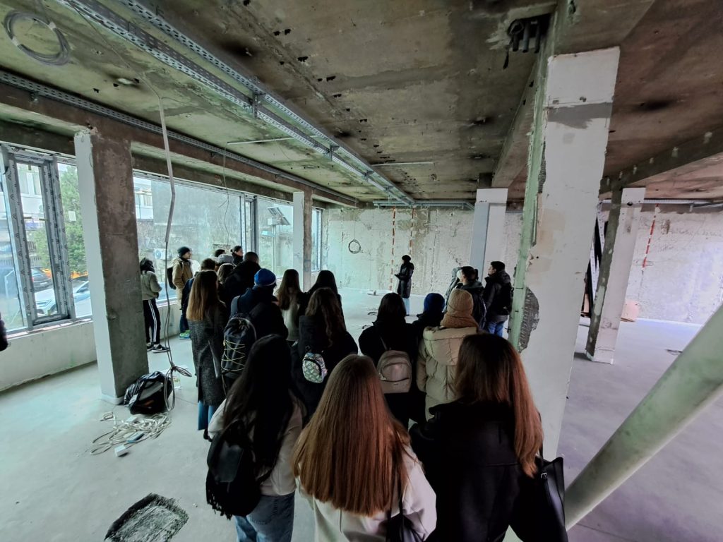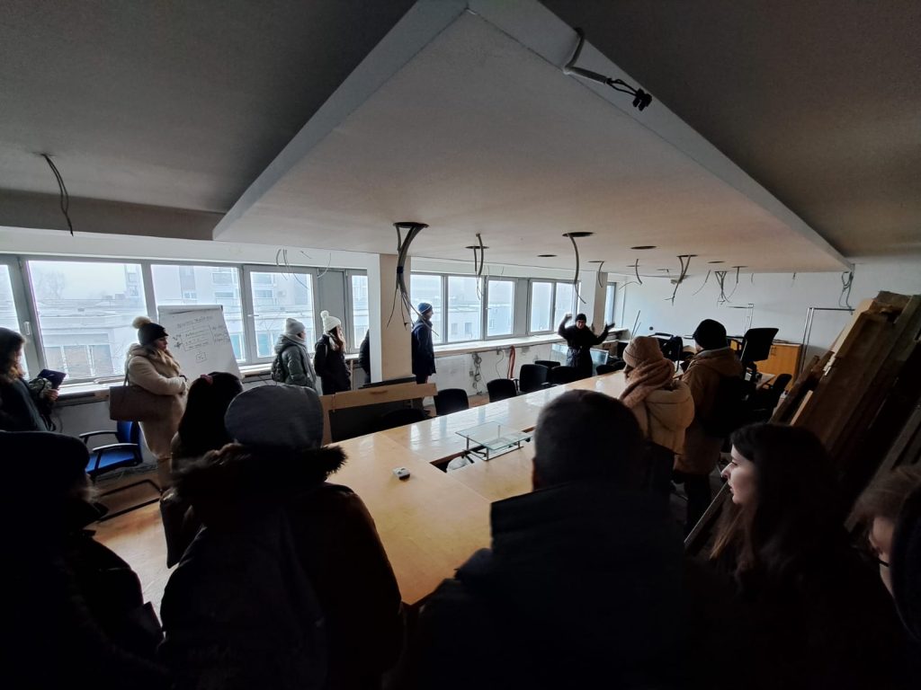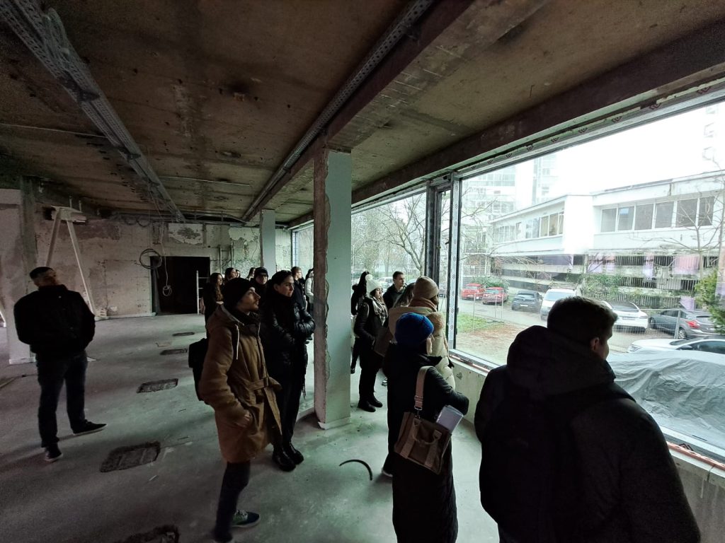 Margareta Zidar, glavna projektantica obnove zgrade, studente je provela po poslovnoj zgradi EIHP-a te ih upoznala s primijenjenim tehničkim rješenjima za ostvarenje nZEB standarda i dodatnim varijantama tehničkih rješenja koje su razmatrane u pripremnoj fazi projekta. Opisano je koji će se izvori energije koristiti na zgradi (daljinski izvor toplinske energije, sunčeva energija za proizvodnju električne energije), kao i planirano korištenje podzemne vode čime će se izvorima energije dostupnima na lokaciji zgrade moći ostvariti standard nulte emisije za zgradu.