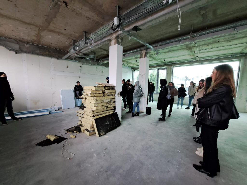 Studenti su mogli vidjeti fazu montaže staklenih stijena, izgled staklenih panela s niskim stupnjem propuštanja sunčevog zračenja, stanje mineralne vune nakon uporabe od 20 godina, usporediti pristup u rješavanju toplinskih mostova na elementima ovojnice zgrade koji su ugrađeni prije 20 godina pa i kakva je suvremena praksa u rješavanju zrakopropusnosti ovojnice zgrade.